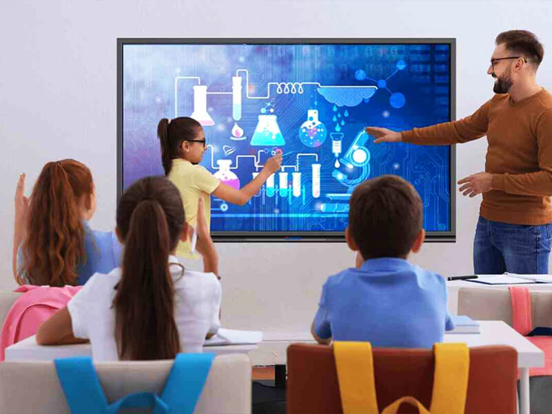 The smart interactive flat panel is an intelligent writing panel that integrates a projector, network TV, speaker, electronic whiteboard, computer, and advertising player functions in one convenient unit. It is a popular choice for use in educational and conference settings. The ultra-narrow bezel design, sliding door lock protection, 4K UHD display, and human-machine interaction with an interactive whiteboard and wireless screencasting software enable a multi-user, interconnected interactive teaching mode and more collaborative meetings.