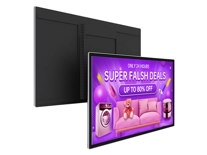 Wall mounted advertising display digital signage and advertising video player refers to a type of digital display that is usually mounted on a wall and used for advertising and marketing purposes. It allows businesses to showcase dynamic content such as videos, images, and text to engage customers and promote products or services. These displays can be controlled remotely to update content, schedule promotions, and monitor performance. They are commonly used in retail stores, restaurants, airports, and other public spaces to deliver targeted messages to a captive audience.