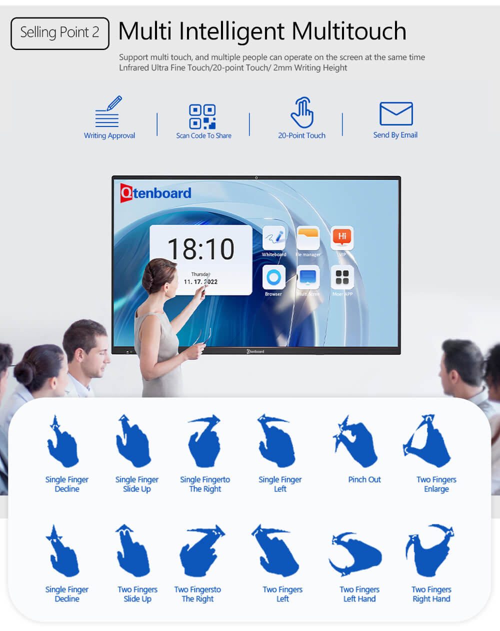 Qtenboard 86 inch android 4k lcd intelligent interactive whiteboard Pen digital display smart board for kids school teaching