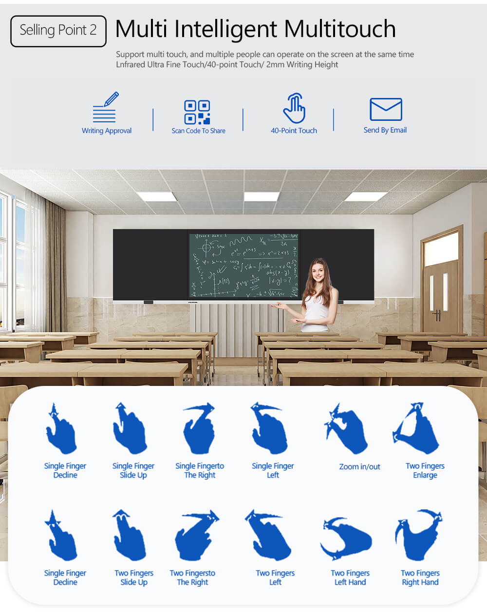 We are pleased to offer a high-quality, wholesale price touch screen 4K UHD Nano smart chalkboard, which is ideal for use as a classroom interactive blackboard. This product is manufactured by China Qunmao Suppliers and is available for purchase from our factory.
