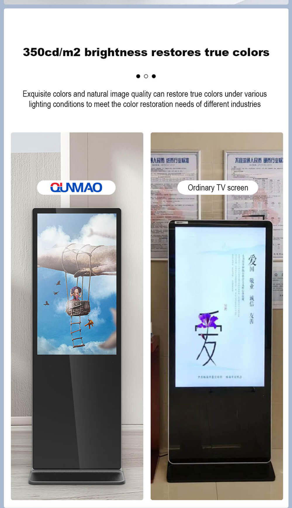 Qunmao manufacturing factory Main prdocuts include :Interactive whiteboard,interactive flat panel,splicing screens, LCD video wall,smart advertising display, smart conference panel, educational tablets, smart blackboards, Digital signage,preschool education machines, smart terminals,queue machine,etc. A high-end technology enterprise with products, it is a master in the field of high-end displays.