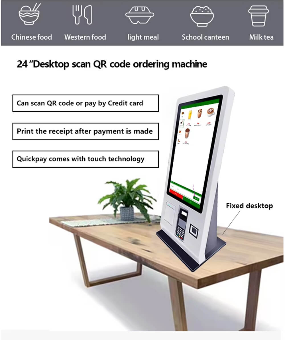 We are Qunmao Factory, and we offer wholesale high-quality touch screen self-service payment ordering kiosks that are perfectly suited to businesses looking to streamline their ordering process and improve customer satisfaction. Our kiosks are designed with user-friendliness, customisability and secure payment processing in mind. Our self-service kiosks allow customers to place orders, make payments and customise their orders with ease. Furthermore, our kiosks can help businesses reduce wait times, improve order accuracy and boost efficiency. To learn more about our self-service payment ordering kiosks and how they can benefit your business, please contact us today.