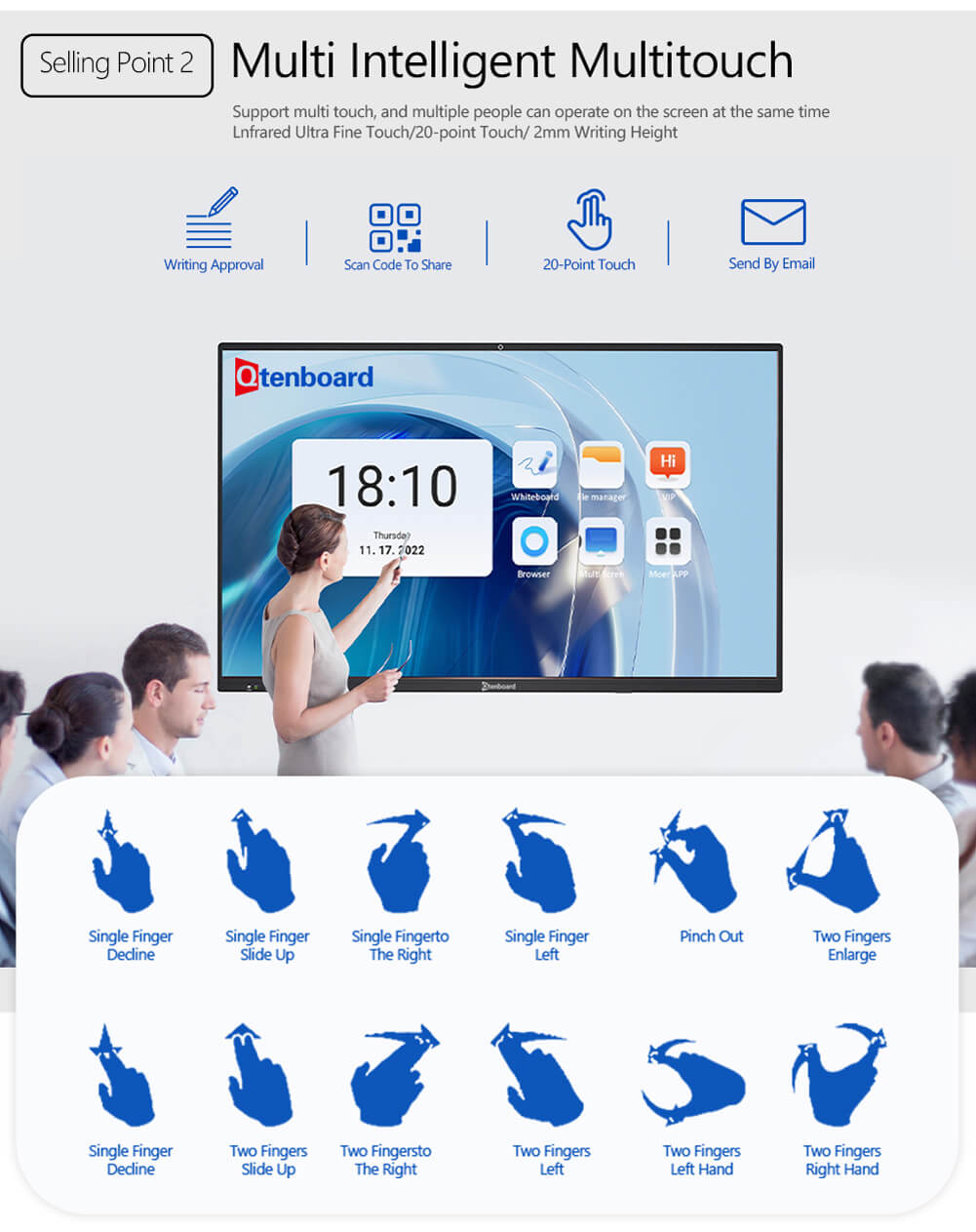 Qtenboard 98 110 Inch OPS Touch Screen flat Panel Smart Digital White Board 4K Interactive Whiteboard For Business Meeting