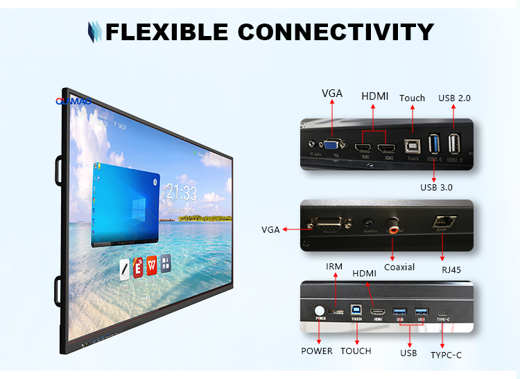 Qunmao manufacturing factory Main prdocuts include :Interactive whiteboard,interactive flat panel,splicing screens, LCD video wall,smart advertising display, smart conference panel, educational tablets, smart blackboards, Digital signage,preschool education machines, smart terminals,queue machine,etc. A high-end technology enterprise with products, it is a master in the field of high-end displays.