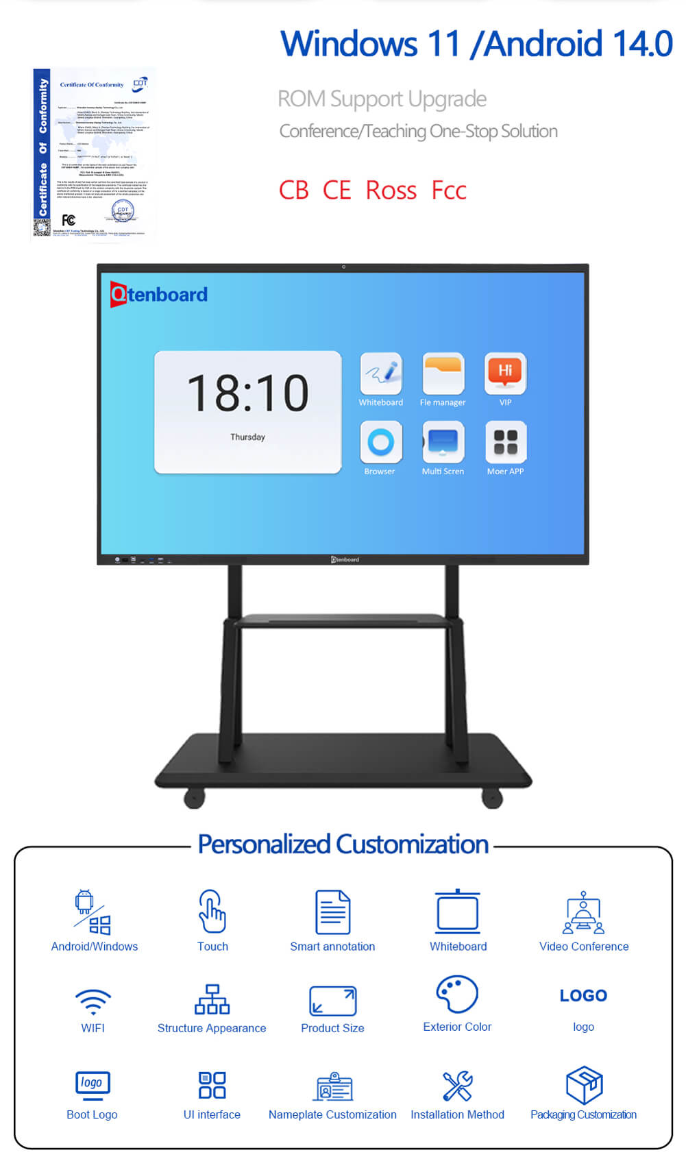 Qtenboard Interactive Boards 55 65 75 85 86 98 105 110 Inch 4K Display Multi Touch Class Teaching Digital Smart Whiteboard