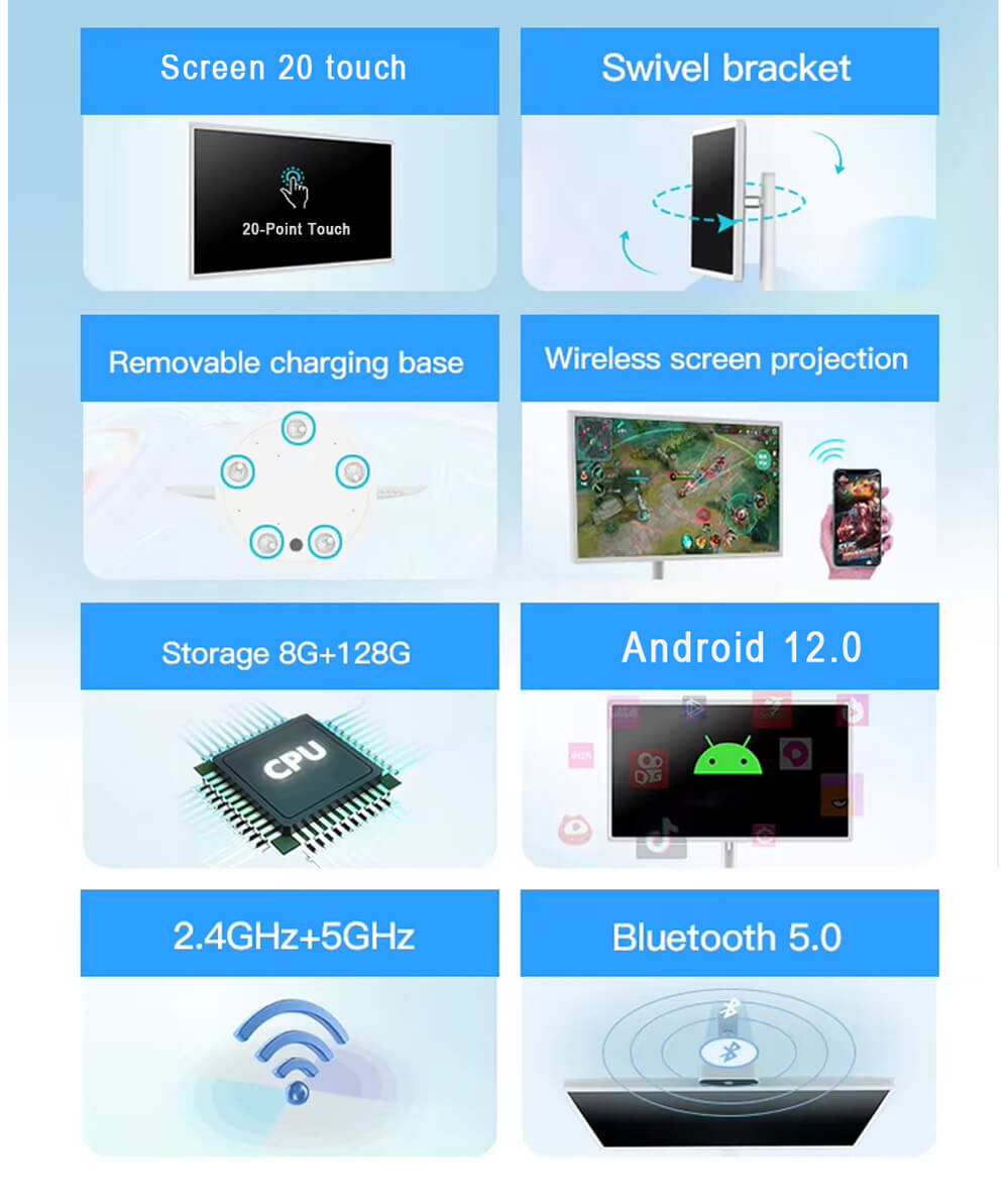 Lcd Display 21.5 24 27 32 Inch Stickme Android 13 Wireless Portable Tv, Rolling Monitor Stand Tv Follow By Me Smart Portable Tv On Wheels